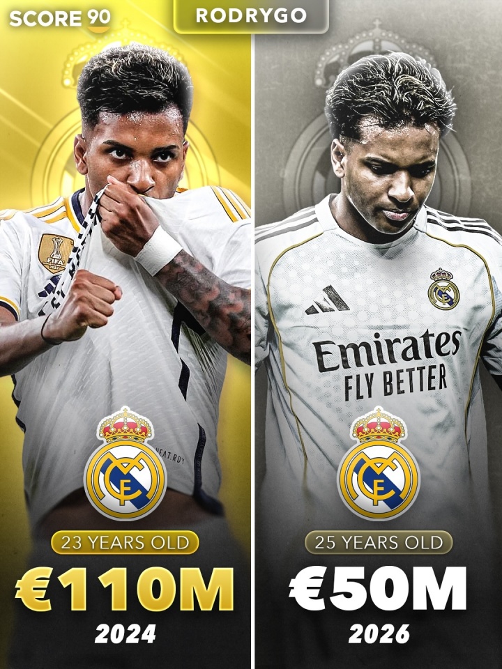 羅德里戈:23歲 1.1億歐→25歲 5000萬歐