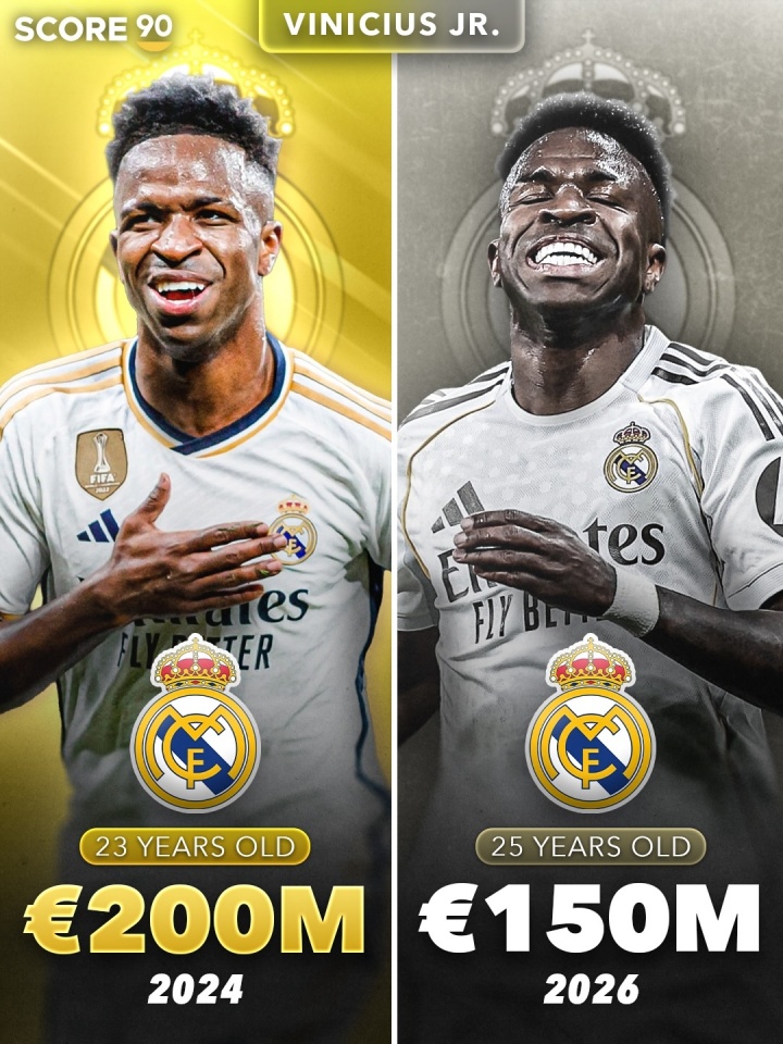 維尼修斯:23歲 2億歐→25歲 1.5億歐