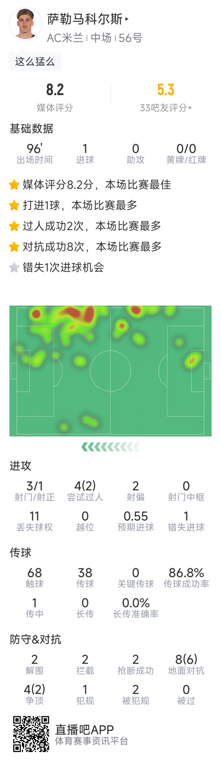 薩勒馬科爾斯本場數(shù)據(jù):1粒進(jìn)球,1次造點(diǎn),3射1正,2次搶斷 薩勒馬科爾斯本場數(shù)據(jù):1粒進(jìn)球,1次造點(diǎn),3射1正,2次搶斷 2025-11-10