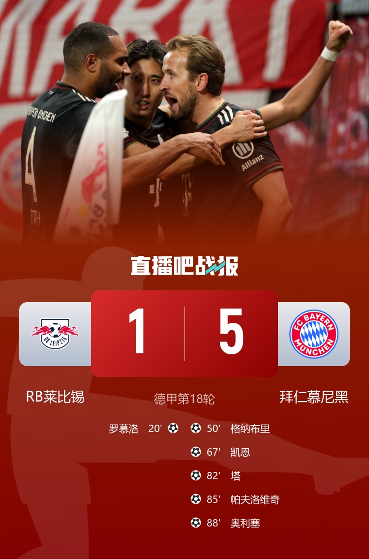 11分領跑!拜仁5-1雙殺萊比錫 奧利塞替補3傳1射穆西亞拉復出助攻
